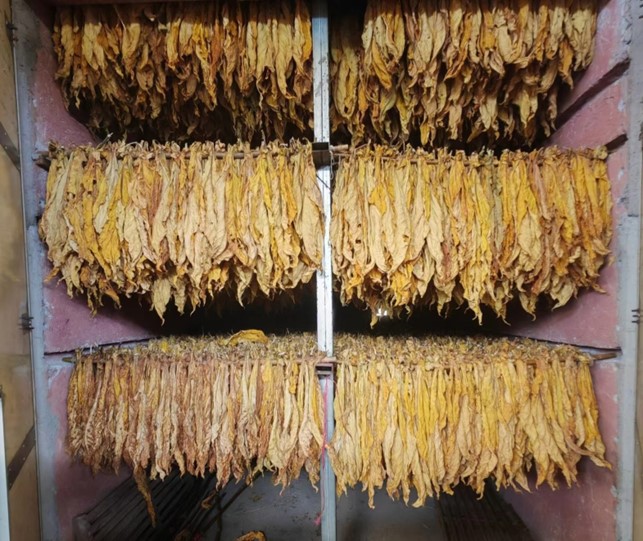 当日上午,志愿者一行由驻村干部们和党总支部书记助理黄积新带领来到了三井烤烟工厂。据负责人介绍三井镇种植烟叶种植面积有700亩,占当地经济发展80%,且当地实行”烟稻轮作”模式。三井烟叶工厂共有64座烤烟房,志愿者了解到,烟叶的种植分配到个体户,丰收时间为6月初到7月中,持续45天左右。