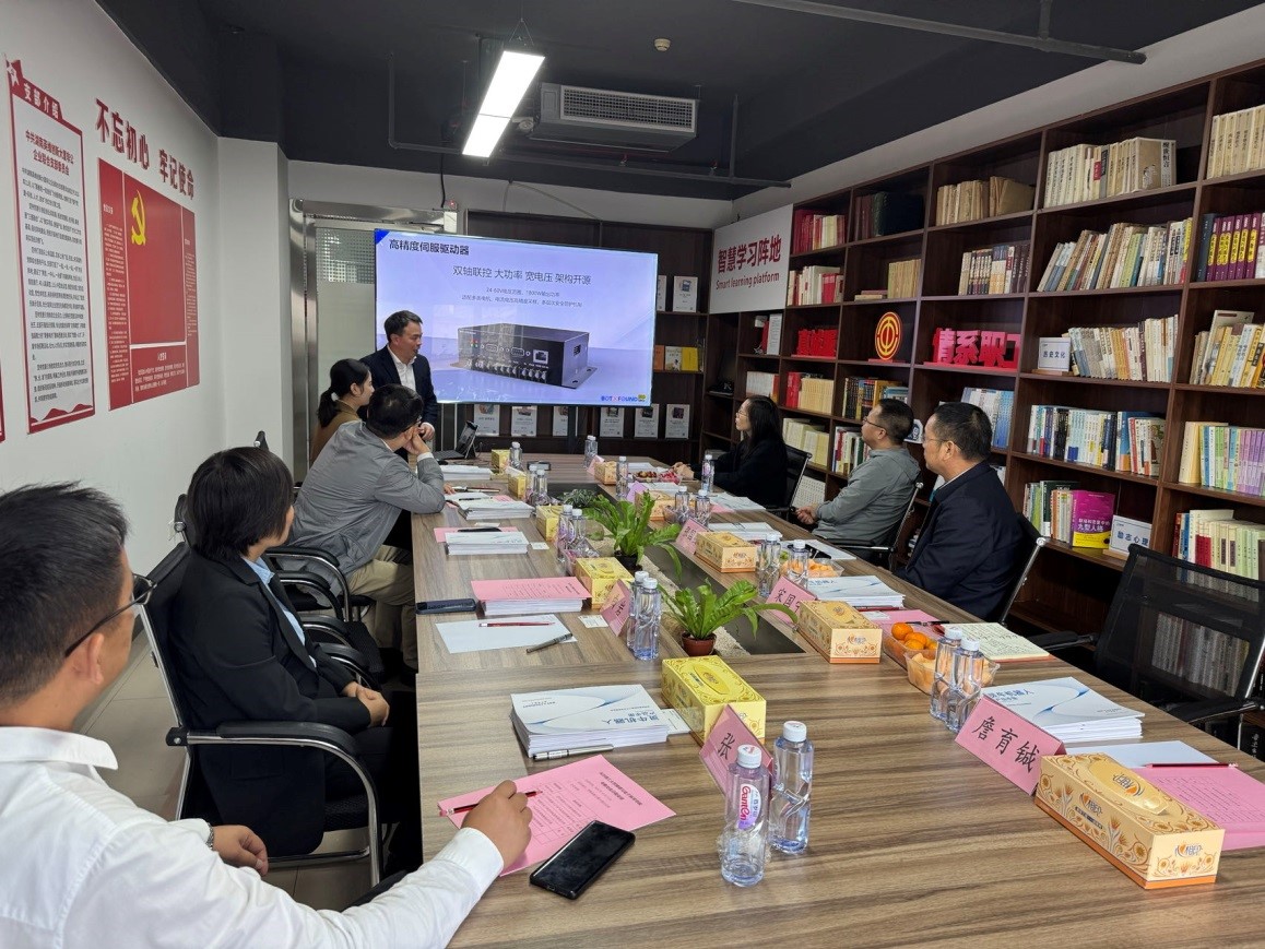湖南灵牛机器人科技有限公司董事长王建华对我院一行的来访表示热烈欢迎,在座谈中,王建华董事长详细介绍了公司的基本情况及发展战略,表达了与学院开展科研合作的期盼。张国强书记向企业介绍了学院的学科发展、人才培养、产业学院建设等情况,希望通过发挥校企双方的双主体作用,深化合作,有效提升学生培养质量,真正做到“企业用得上、学生留得下”。