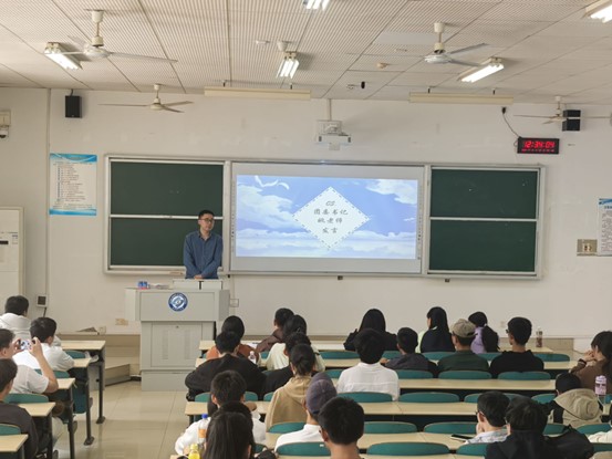 团委书记姚老师在动员大会上发表讲话,鼓励运动员们以积极、饱满、热情的态度参加运动会,弘扬“更快、更高、更强”的奥林匹克精神,展现物电学子的风采。