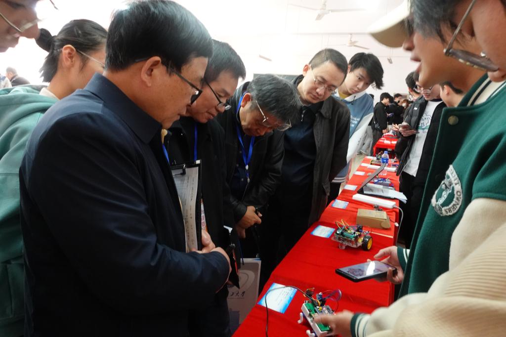 开幕式结束后,全体评委、嘉宾和参赛队伍代表前往各赛区观看作品现场展示。本次大赛采用现场答辩的方式来展示各个队伍的作品,分为自主选题组和企业命题组,最终自主命题组评出特等奖2个,最佳创意奖2个,一等奖4个,二等奖6个,三等奖20个;企业组奖项20个。