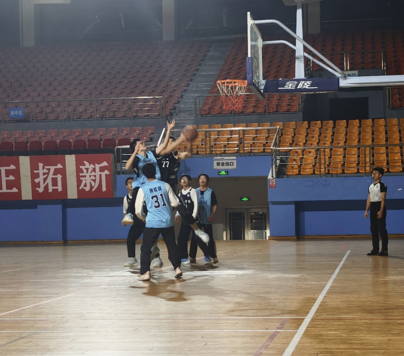 本次篮球赛决赛吸引了众多大一学子的积极参与,他们以饱满的热情投入到观看比赛中。在激烈的赛场上,同学们展现了出色的篮球技艺和团队合作精神。比赛中,球员们精准的投篮、灵活的运球和紧密的配合,赢得了观众们的阵阵掌声。