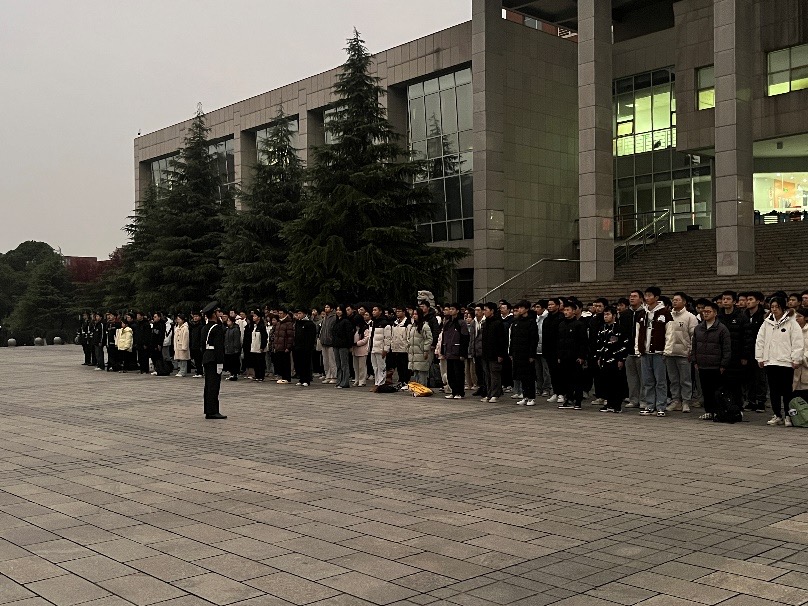 12月30日,物电学院在图书馆前坪举行“严肃考风考纪 建设优良学风”主题升旗仪式,院党委副书记宋国宁、全体辅导员、2024级全体同学参加本次升旗仪式。