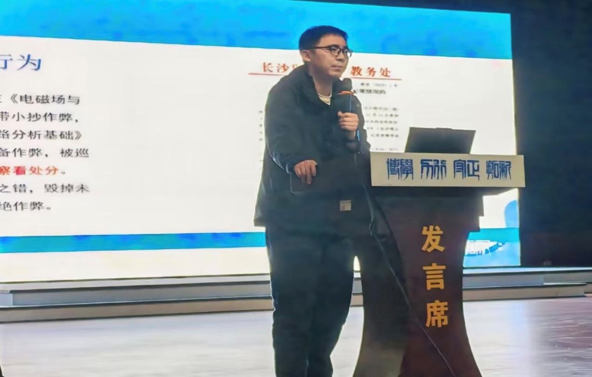她通过科学家钱学森“科学家有国界”的箴言的事迹和学院3位毕业生创业攻克智能检测技术壁垒的案例,阐释了“科技报国”的现实意义,勉励学生同学们将专业所学转化为服务国家的实践能力。叶正芳强调,大学时光是塑造人生的关键阶段,同学们应珍惜每一次学习机会,培养自主学习能力和创新思维,为未来步入社会做好充分准备。她勉励大家以格物致知铸就科学脊梁、做真理的求索者,以知行合一涵养家国情怀、做时代的解题人,以批判思维筑牢价值根基、做思想的破壁者。