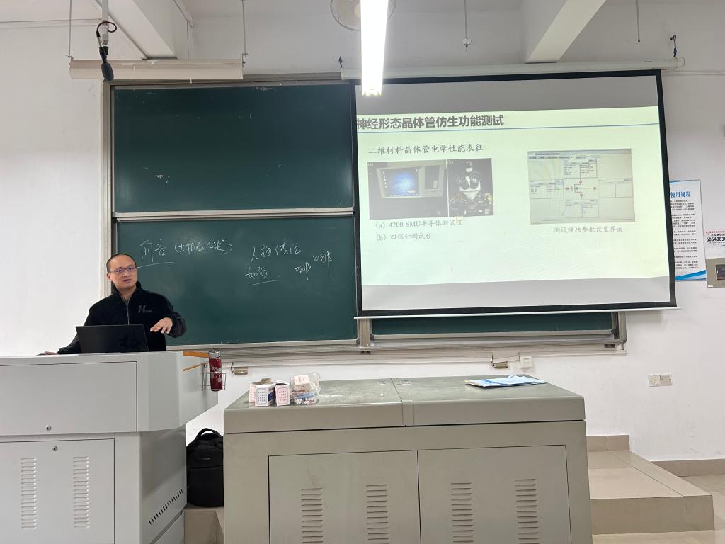 听完之后,同学们都感受到谢博士在这个领域浓厚的知识底蕴,大家激情澎湃自发响起阵阵热烈掌声。提问答疑环节,大家依次提出了自己的疑惑,谢博士也耐心的为大家一一解答,加深大家对本次讲座知识的理解。这次讲座激发了同学们对神经形态电子器件的兴趣,同时大家也学习到了丰富的知识,开拓了视野。