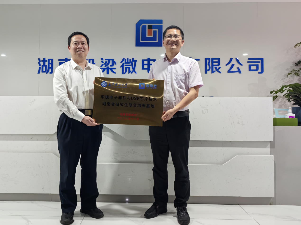 最后双方举行了“车规电子器件与DSP芯片技术”湖南省研究生联合培养基地授牌仪式。未来,校企双方将不断完善育人机制,拓展合作渠道,把联合培养基地办出特色和成效,共同为湖南集成电路产业的高质量发展贡献力量!