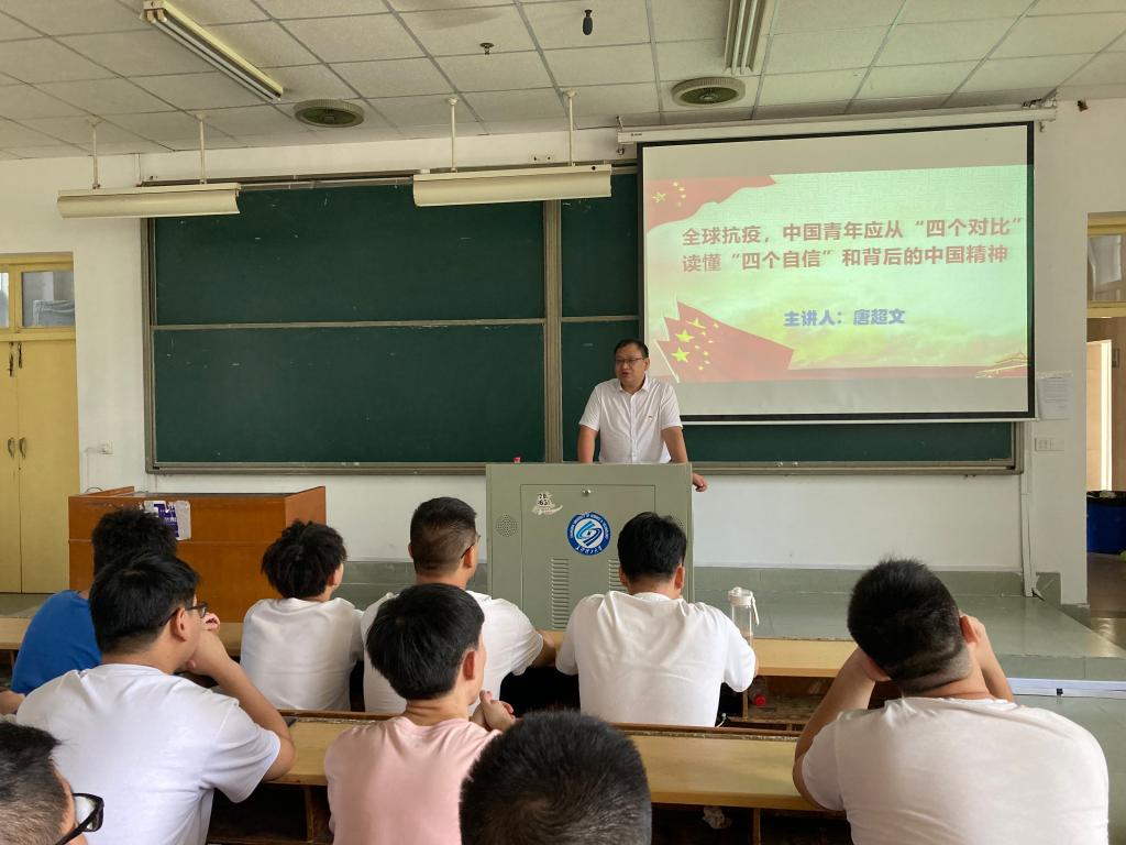 课上,唐书记做了题为“全球抗疫,中国青年应从‘四个对比’读懂‘四个自信’和背后的中国精神”的专题报告。他以本次疫情防控为切入点,结合中国抗疫实际和国际抗疫形势,通过生动的案例分析、详实的数据比较,从“方向抉择、执政方略、治理模式、精神塑造”四个方面进行比对,深刻剖析了疫情防控中彰显的“四个自信”。