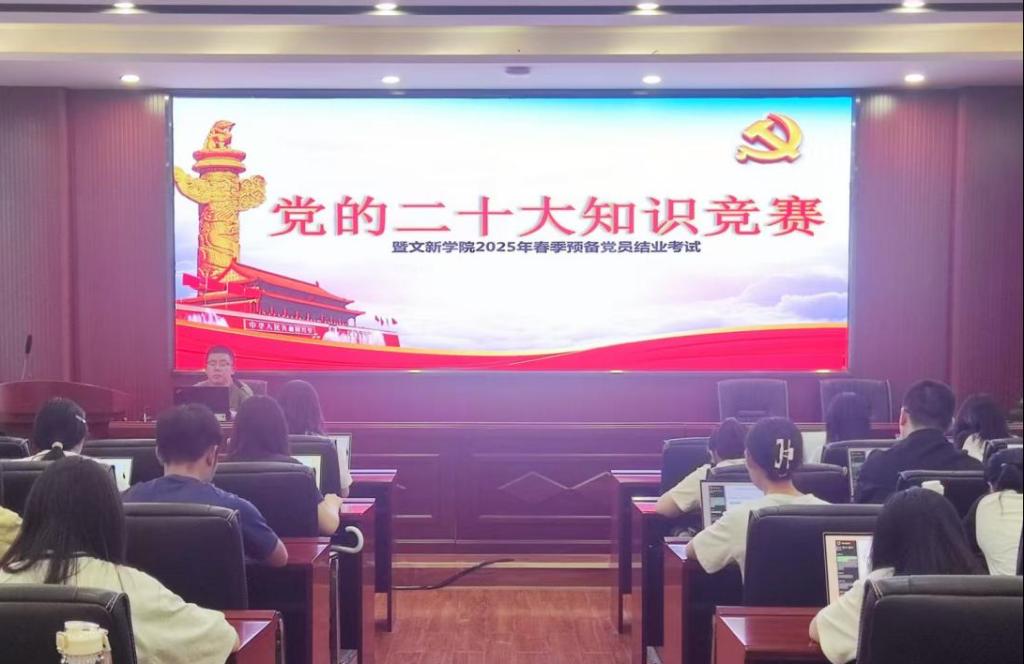 为贯彻落实党的二十大精神,积极探索“党建+互联网”新模式,进一步提升预备党员的理论知识水平,5月22日12时15分,“党的二十大知识竞赛暨文新学院2025年春季预备党员结业考试”于必赢官网金盆岭校区九号教学楼218室成功举行。