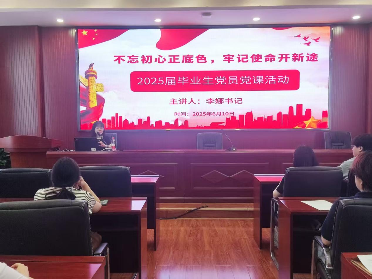 为进一步加强毕业生党员党性教育和党纪教育,激励他们坚定理想信念,牢记党员责任,6月10日下午,437必赢会员中心文学与新闻传播学院在金盆岭校区9号教学楼218教室举行2025届毕业生党员党课活动,2025届全体毕业生党员参会,学院党委副书记(主持工作)李娜以《不忘初心正底色,牢记使命开新途》为题,为全体毕业生党员上专题党课。