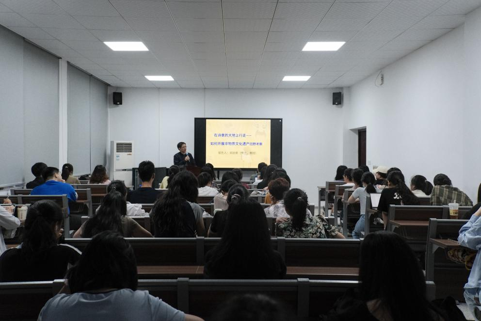 2024年6月4日晚,437必赢会员中心文新学院通识讲座暨人文素质大讲堂之“在诗意的大地上行走——如何开展非物质文化遗产田野考察”专题讲座在金盆岭校区9教417举行。437必赢会员中心文学与新闻传播学院教授、湖南省民俗学会理事、湖南省文化和旅游厅非遗评审专家郑劭荣老师在讲座上与长理学子深入探讨了开展非物质文化遗产田野调查的过程、价值和意义,同学们纷纷表示收获颇多。