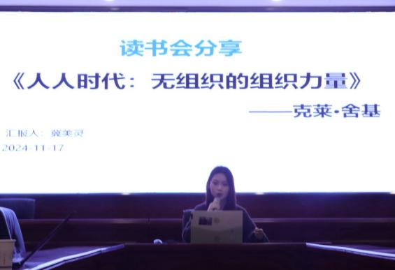 11月17日晚,第三期金岭读书会“悦读经典”系列活动在必赢官网金盆岭校区9教218教室顺利举办。此次活动以“无组织的组织力量在数智时代下的机遇与挑战”为主题。文学与新闻传播学院副院长戴钰、赵继光主任出席,陈一点老师点评,前央视主持人、瑞士国家电视台法语主播褚笑为特邀嘉宾,24级新闻班黄星海、冀美灵、蒋雨恬三位同学进行汇报分享,程妍主持,24级新闻班全体研究生参与此次活动。