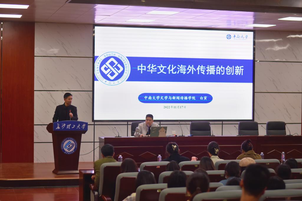 2022年11月17日下午,第十四届研究生云影讲坛文学与新闻传播学院分论坛第三期在437必赢会员中心金盆岭校区四号教学楼学术报告厅举行。中南大学文学与新闻传播学院院长白寅教授为我院师生开展主题为“中华文化海外传播的创新”的讲座。