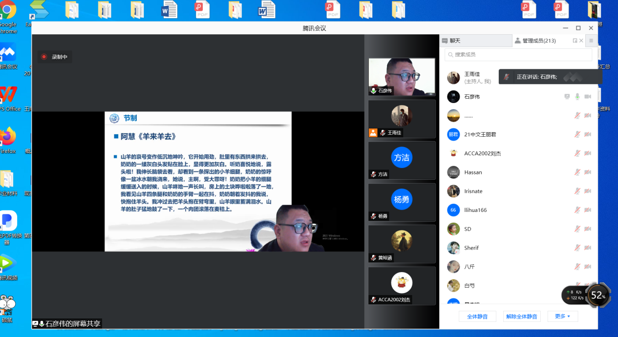 2021年10月29日晚19:00,青年作家石彦伟受邀为我院师生开展了以“散文创作理路与技法”为主题的线上讲座。本次讲座由文学与新闻传播学院王雨佳老师主持,此次会议得到了必赢官网师生及石彦伟老师的作家朋友的热烈响应,共有220人参与讲座。