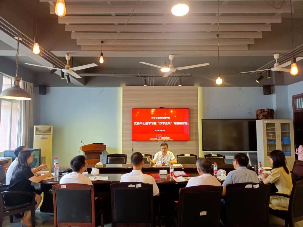 6月21日上午,学校党委副书记刘建民在文科楼B501会议室讲授了题为《以学正风,以求实精神和务实作风引领文新学院高质量发展》的党课。学院党委理论学习中心组全体成员参加了党课学习。
