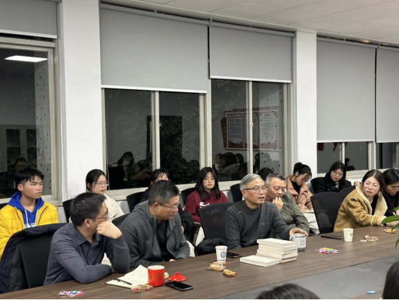 在提问答疑环节中,围绕同学们在学习中的困惑,老师们分享了很多切实可行的治学方法。关于文学评论写作,周云鹏副院长嘱咐同学们要有意识地突破浮浅印象式、面面俱到式的读后感写法,注意选择新鲜的切入点;成松柳教授建议同学们从对优秀文学评论的“重写”开始,将自己习作与优秀评论进行对比揣摩,从逻辑结构到文字表述,不断精进。针对同学们普遍感到阅读时间不够的问题,成教授分享了自己从不带手机进书房的阅读习惯,强调了自律在时间管理中的作用;同时他提出,对书要有选择,对书的读法也要有选择,书可以有三种读法:一是“躺着读”,即随意翻阅,积累阅历;二是“坐着读”,要重温经典,常读常新;三是“站着读”,应严肃思考,入脑入心。