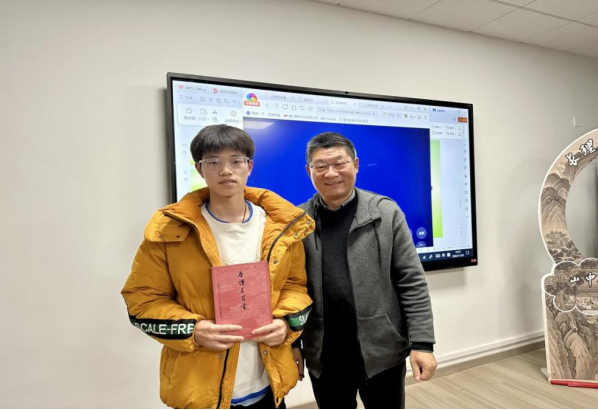 在交流过程中,成教授即兴展示了经典记诵的扎实功底,并与现场同学展开了诗词背诵接龙挑战。范仲淹名篇《岳阳楼记》的吟诵声伴随着大家的欢声笑语在室内回响。随后,成教授向背诵得最流利的同学当场签赠专著,现场气氛达到高潮。