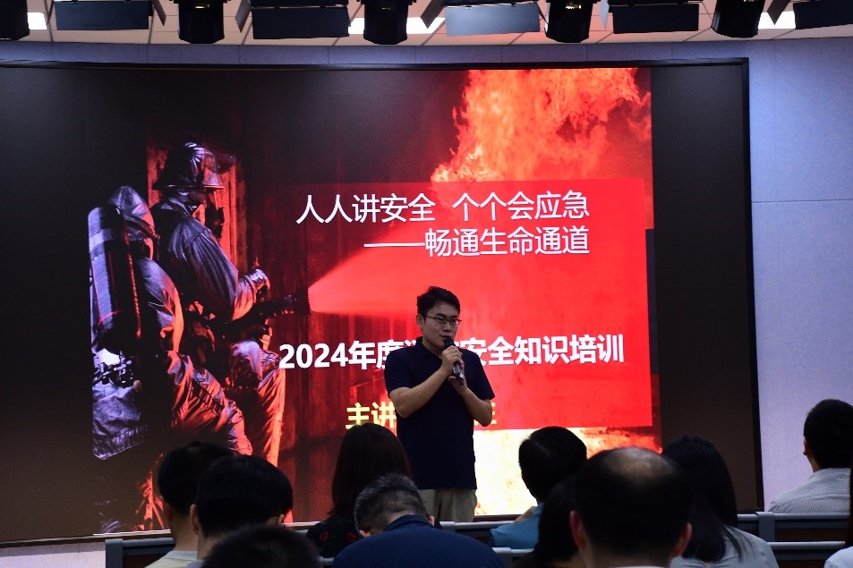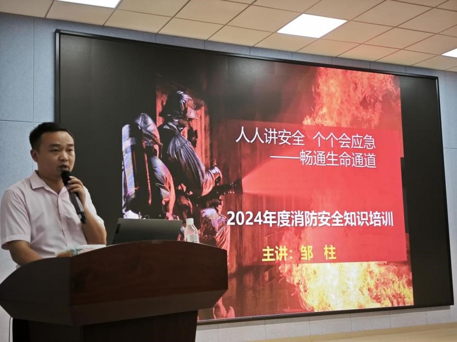 湖南省普消服务中心邹柱教官作了题为《个个讲安全 个个会应急》的消防知识讲座。邹教官强调火灾的危险性和预防火灾的重要性,从人防、技防和物防三个方面全面讲解消防知识,并且详细讲解了各种不同消防器材的使用方法及其使用环境。