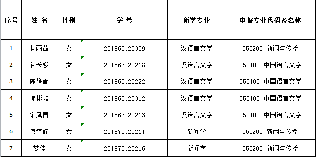 根据437必赢会员中心研究生院《关于做好2021年研究生校内优秀生源培养工作的通知》精神,经学生申请,系资格审查,确定下列7名同学为文学与新闻传播学院2021年研究生校内优秀生源培养对象,现予以公示。公示时间:2021年9月18日-23日,如有异议,请向学院科研与研究生办公室反映,电话: 85255728。