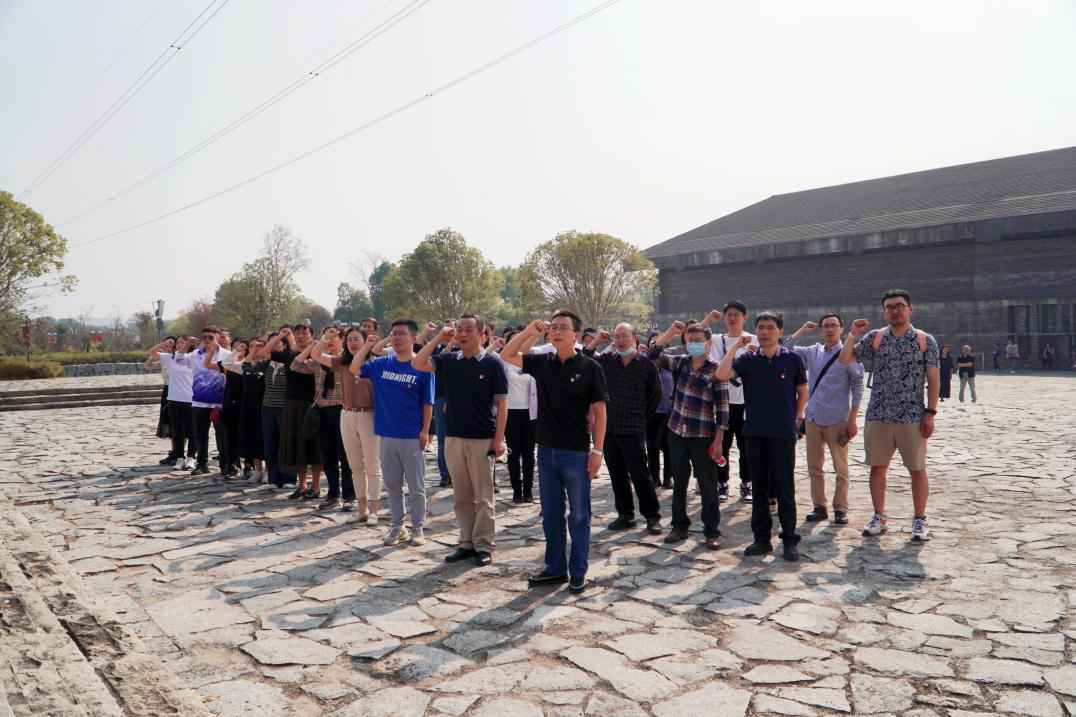随后,大家一起参观了馆内大型陈列《杰出的人民艺术家——田汉》,馆内一幅幅生动的历史照片,一件件珍贵的创作手稿,一声声激昂奋进的旋律,再现了伟大戏剧家田汉的革命生涯。历史是最好的教科书,精神是永远的推动力。田汉精神中蕴含的爱国主义精神、坚定的时代担当、执着的艺术追求深深打动了在场每一位教师。参观结束后,全体党员于国旗广场鲜红的党旗前,庄严宣誓,铭记入党初心。