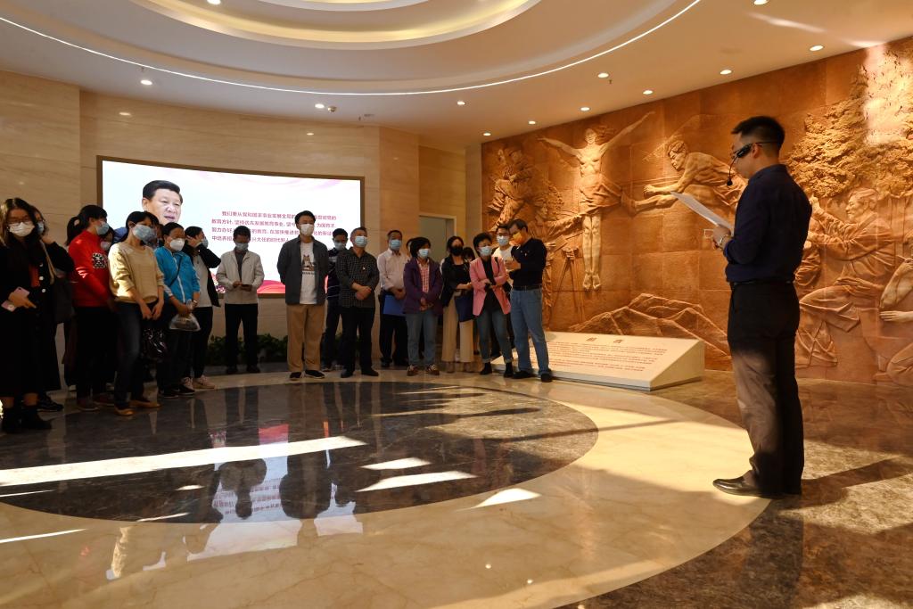 10月18日下午,文学与新闻传播学院党委在学校“三全育人”教育基地序厅组织全院教职工集中学习党的二十大精神。