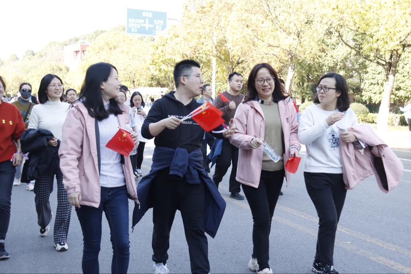 15时30分,鸣枪声响起,全体教职工欢呼着挥动国旗穿过起点,开启健步行之旅。此次健步行以田径场为起点,途径五个打卡点,最后回到起点凭借打卡手环兑换礼品。一路上,我院教职工欢声笑语,洋溢着青春与活力,充分享受春日阳光沐浴和运动带来的畅快。