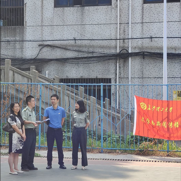 916日上午,学院党委书记伍接朝、院长刘建新、党委副书记刘莎、副院长耿蕊代表学院来到2021级新生训练场地慰问正在认真操练的我院全体新生。
