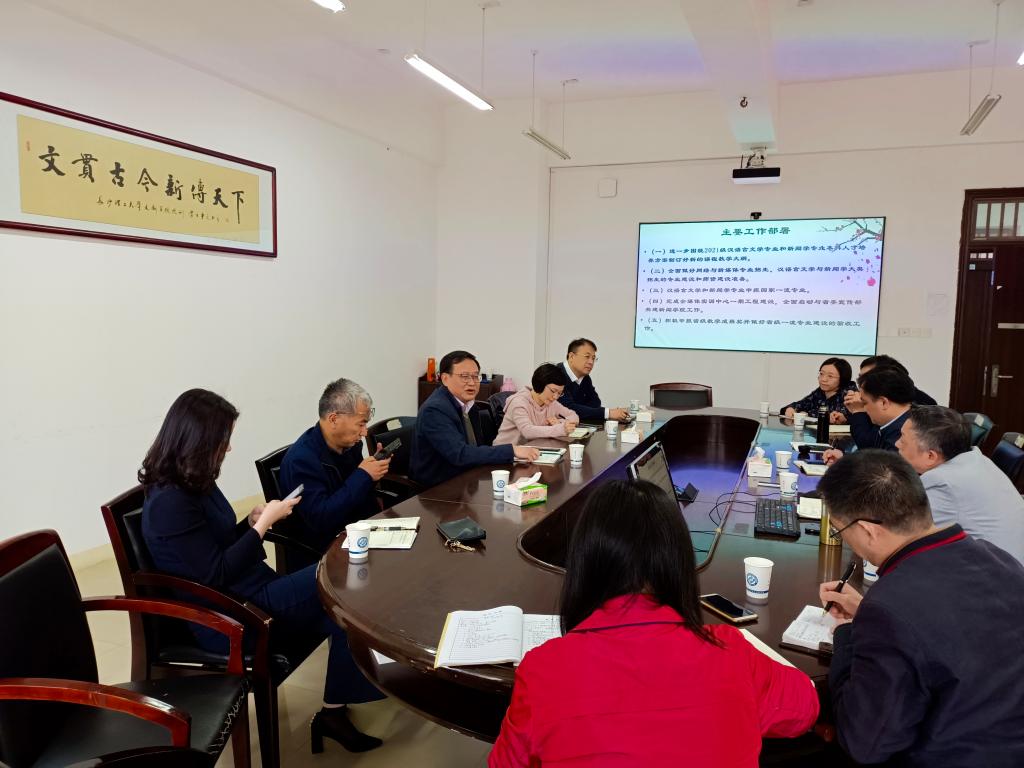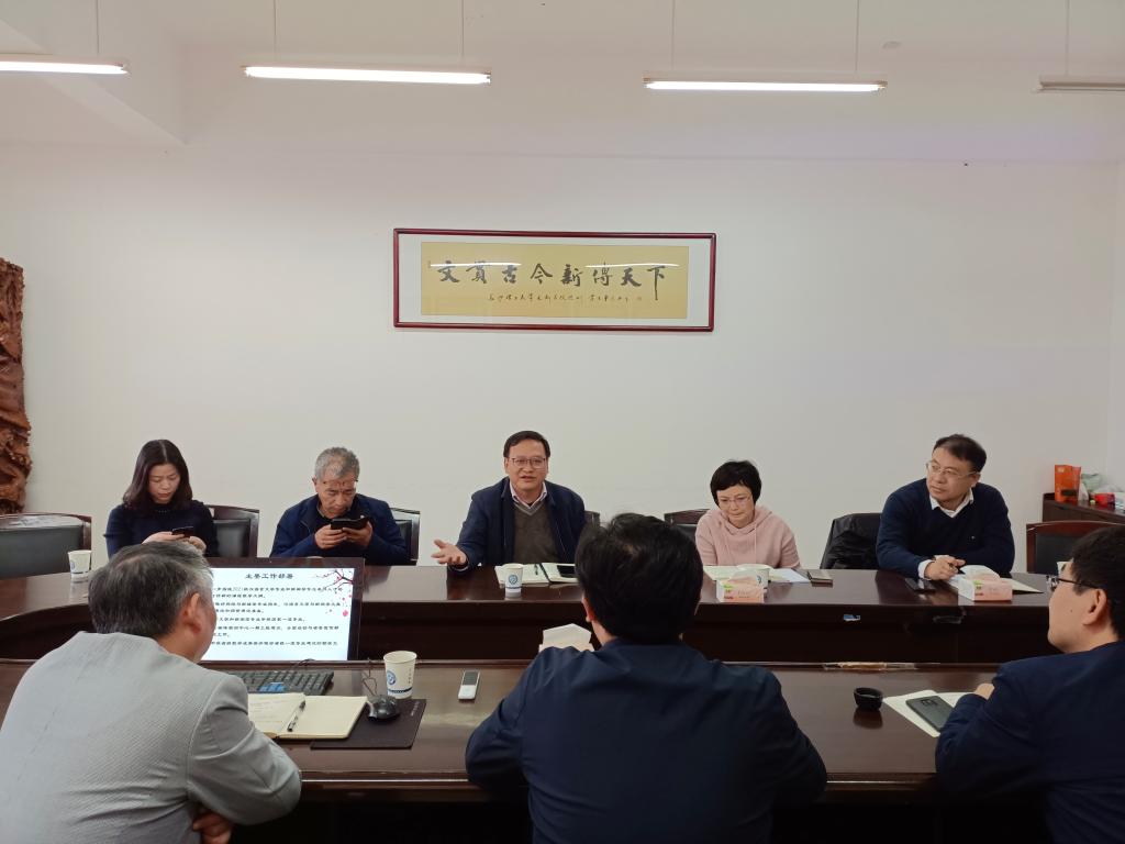 贺跃光副处长交流了实践教学工作中的常规问题,要求毕业设计工作要做到位;蒋菲副处长就省级一流课程及新文科项目等课程建设提出了指导性意见,指出课程建设需要团队合作,群策群力,认真打磨,靠质量取胜;刘洪深副处长就常规教学管理、困难毕业生帮扶等问题同学院进行了沟通;陈瑜处长指出我院要做好科学定位,找准学科专业突破口,培养专业自信。同时对我院全校性公共课程《大学应用语文》的教学质量提出了更高要求。