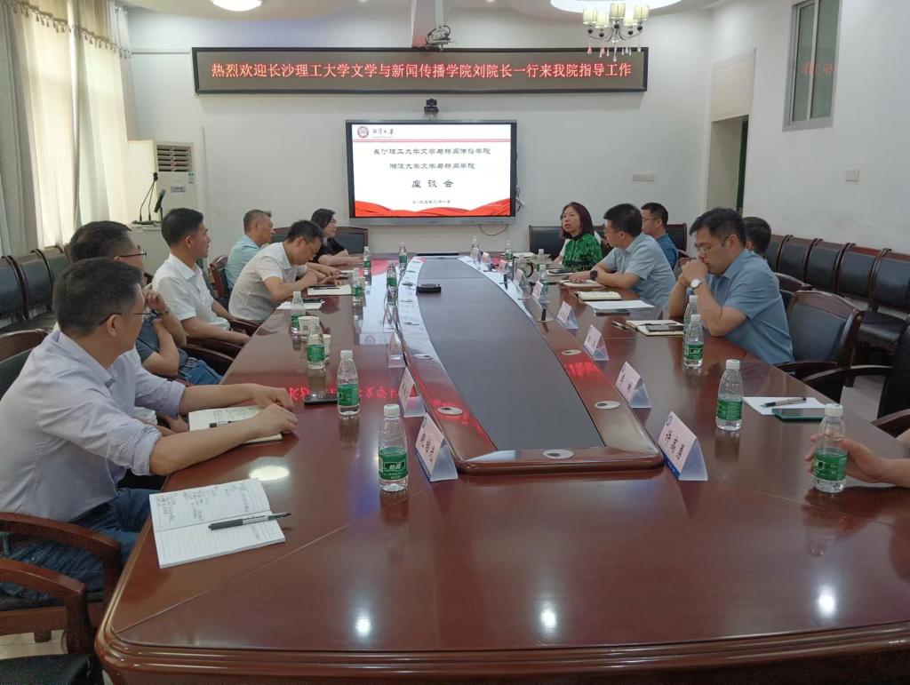 61日,学院领导班子一行赴湘潭大学文学与新闻学院、湖南科技大学人文学院调研。