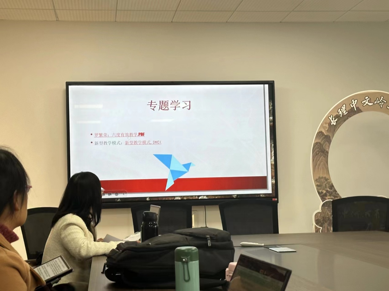 随后,组织老师们对湖南师大罗繁荣老师主讲的《六度有效教学》讲座内容进行了专题学习。通过此次学习,老师们从目标达成度、学生参与度、创新发展度、课程育人度、持续改进度、教学幸福度等六个维度深刻认识了OBE教学理念。同时,周静又分享了“5E”教学模式、ADDIE教学设计模型建构、对分课堂、BOPPPS教学模型等新型教学模式,助力教师们打造具有高阶性、创新性、挑战性的金课。
