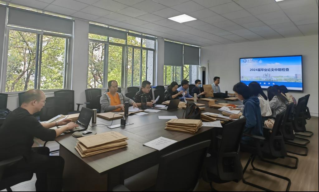 为保障2024届本科生毕业论文工作有效开展,加强过程管理,保证本科生毕业论文质量,我院于4月23日下午2:00,在九教318、319室对2024届本科毕业论文进行了中期检查,重点检查了本届本科毕业论文任务书、开题报告及外文翻译、体现毕业设计论文中期阶段性已完成工作的进展材料、中期检查成绩评定情况等。
