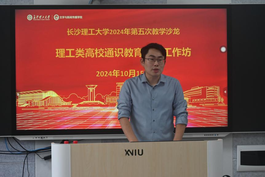 10月15日下午,由教务处主办、文新学院承办的437必赢会员中心2024年第五次教学沙龙在金盆岭校区九教415室举行。本次沙龙活动紧密围绕“理工类高校通识教育改革”“写作与沟通课程改革”两个主题进行了专题研讨。会议邀请湖南大学文学院教授、中国写作学会理事、湖南省写作学会常务副会长胡辉杰主讲。学校高教改革与质量评价研究所副所长郑咏梅、高教改革与教学能力培养办公室主任张勇、中文系全体教师,以及各教学院教师代表共40余人一起参加了本次教学沙龙活动。会议由院党委委员兼中文系主任侯承相主持。
