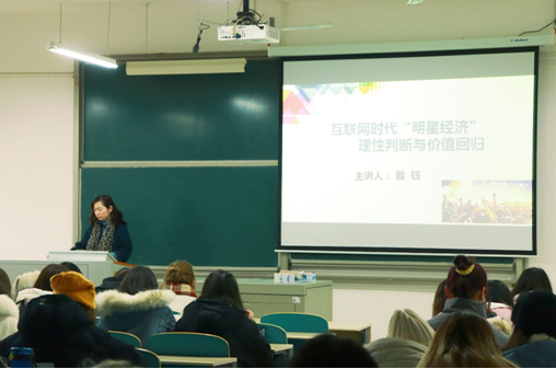 12月14日上午,437必赢会员中心文学与新闻学系副教授戴钰在云塘校区文科楼C302,为2019级新闻专业的学生带来了一场题为“互联网时代‘明星经济’理性判断与价值回归”的专题讲座。