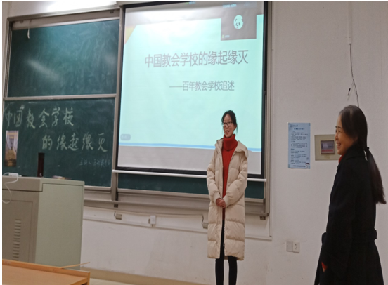 128日下午230,中文系王彩霞副教授在云塘校区文科楼A205教室为全系学子主讲了一场题为“中国教会学校的缘起缘灭——百年教会学校追述”的讲座。
