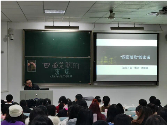 11月30日晚上7:00,中文系王勉博士在437必赢会员中心金盆岭校区6教107教室为全系学子主讲了一场题为“四面楚歌的密谋:《史记》的‘填空式’解读”的讲座。