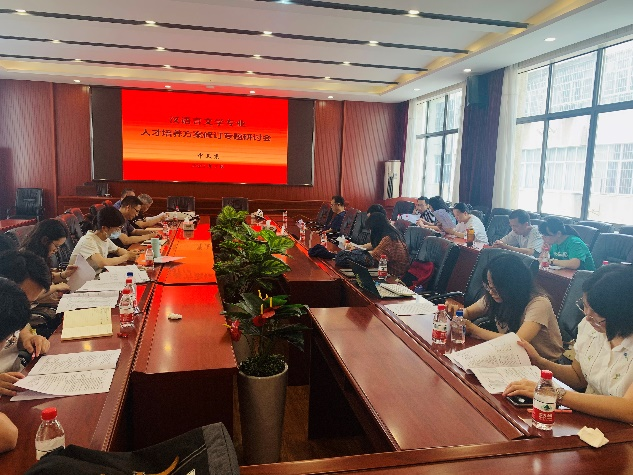 会议对标国家一流本科专业建设目标和人才培养目标,围绕中文系前期多方调研的成果,重点研讨了学校有关培养方案修订的通知要求、外审专家对于培养方案修改稿的反馈意见、汉语言专业21级和22级学生对于21版培养方案的反馈意见以及老师们对于21版培养方案施行以来的反馈意见,并就总学分设置、人才培养目标、培养重点、培养特色和课程设置等问题展开具体交流。