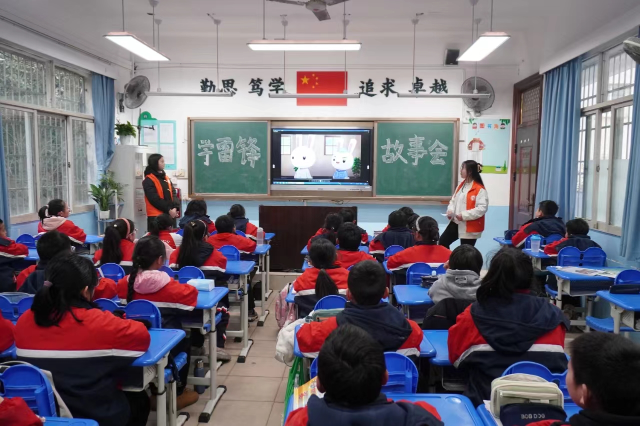 在“学习雷锋精神”课堂上,同学们在志愿者的讲述下重温雷锋故事。志愿者们通过播放歌曲和动画片、展示PPT、提问等各种方式,向同学们介绍了雷锋的生平故事,也让同学们明白了学习雷锋的必要性和重要性。多样的授课形式,不仅调动了同学们的课堂兴趣和积极性,还让同学们从中有所启发,引领同学们走近雷锋,感悟雷锋精神,引导同学们向雷锋同志学习,争做新时代先锋人。