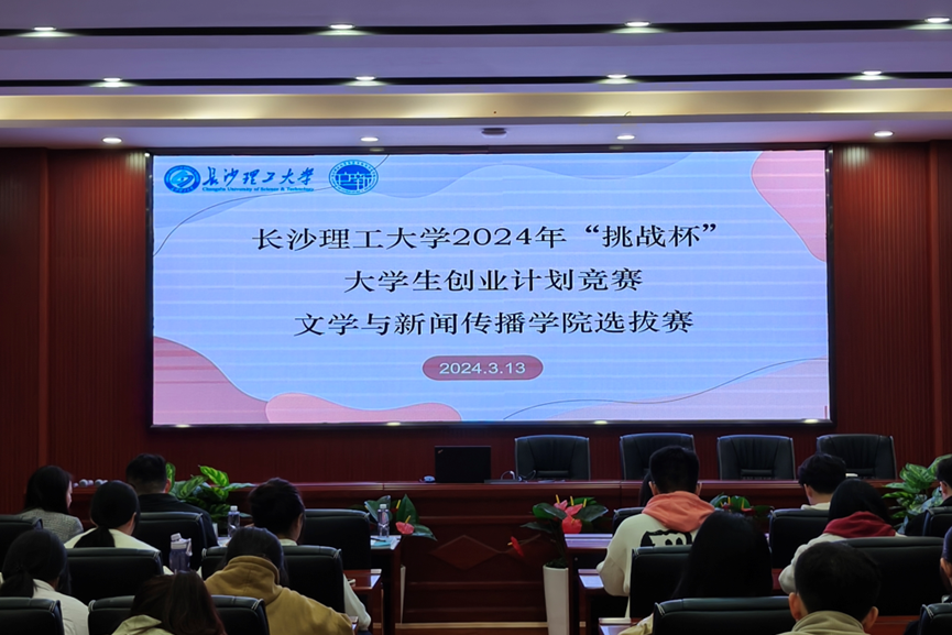 2024313日晚7点,文新学院于金盆岭校区九教218学术报告厅举办2024年“挑战杯”大学生创业计划竞赛院级选拔赛。文新学院党委副书记刘莎,文新学院党委委员、中文系主任侯承相,校党委组织部综合管理科科长常晗出席本次比赛。