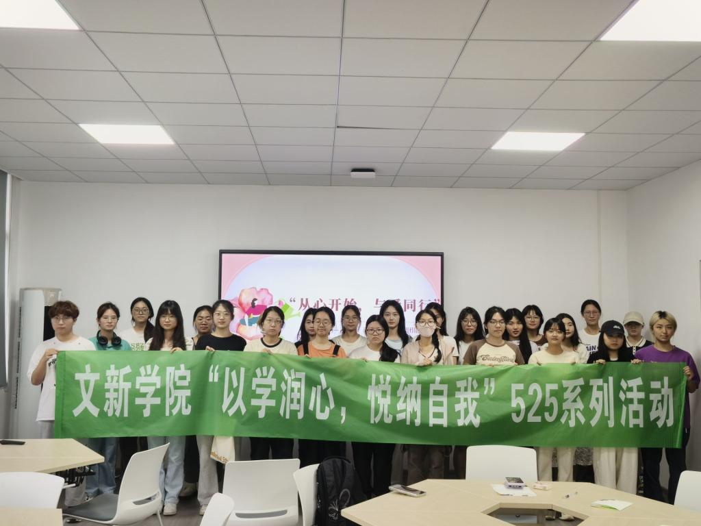 为帮助同学们缓解心理压力,增强心理调适能力,5月21日下午,文新学院在金盆岭校区九教223团体辅导室开展“525”系列活动之“从心开始,与爱同行”主题团辅活动
