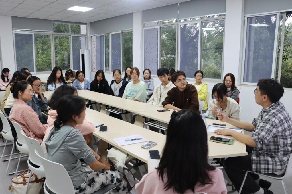 2024年10月15日,我院于金盆岭校区九教223团体心理辅导室举办第一期“文新悦谈·学长学姐成长分享会”汉语言2103班任源担任分享嘉宾,24级部分学生代表参与。