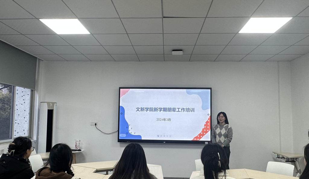 为提高朋辈队伍工作意识和工作水平,3月20日下午,文新学院在九教223团体辅导室举行新学期工作培训。学院心理辅导员李婵主持,院学生会心理部同学参会。