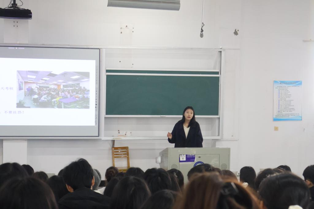 12月17日下午,文新学院于金盆岭校区12教600教室举行2023级本科生学风建设暨安全教育主题大会,年级辅导员李婵主持,23级全体学生参加。