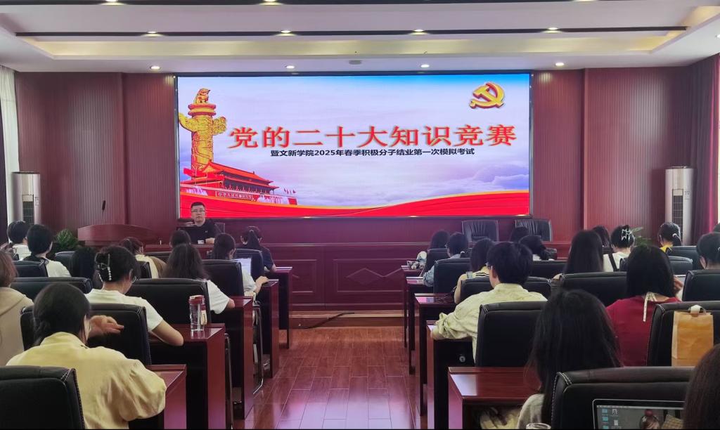 为贯彻落实党的二十大精神,积极探索“党建+互联网”新模式,进一步提升积极分子的理论知识水平,5月16日12时10分,“党的二十大知识竞赛暨文新学院2025年春季积极分子第一次模拟考试”于必赢官网金盆岭校区九号教学楼218、223室成功举行。