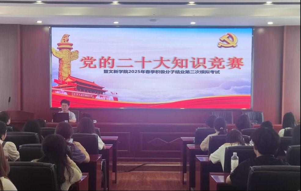 为贯彻落实党的二十大精神,积极探索“党建+互联网”新模式,进一步提升积极分子的理论知识水平,5月19日12时10分,“党的二十大知识竞赛暨文新学院2025年春季积极分子第二次模拟考试”于必赢官网金盆岭校区九号教学楼218、223室成功举行。