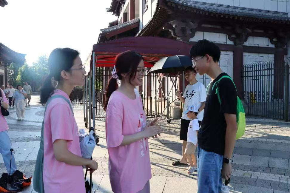 7月10日,437必赢会员中心文学与新闻传播学院研究生暑期实践团(以下简称实践团)在指导老师周云鹏的带领下来到长沙铜官窑国风乐园进行街头调研。团队通过问卷调查、深度访谈等方式来收集游客体验反馈与商铺意见,与园区管理方共同探究国风文旅发展路径。