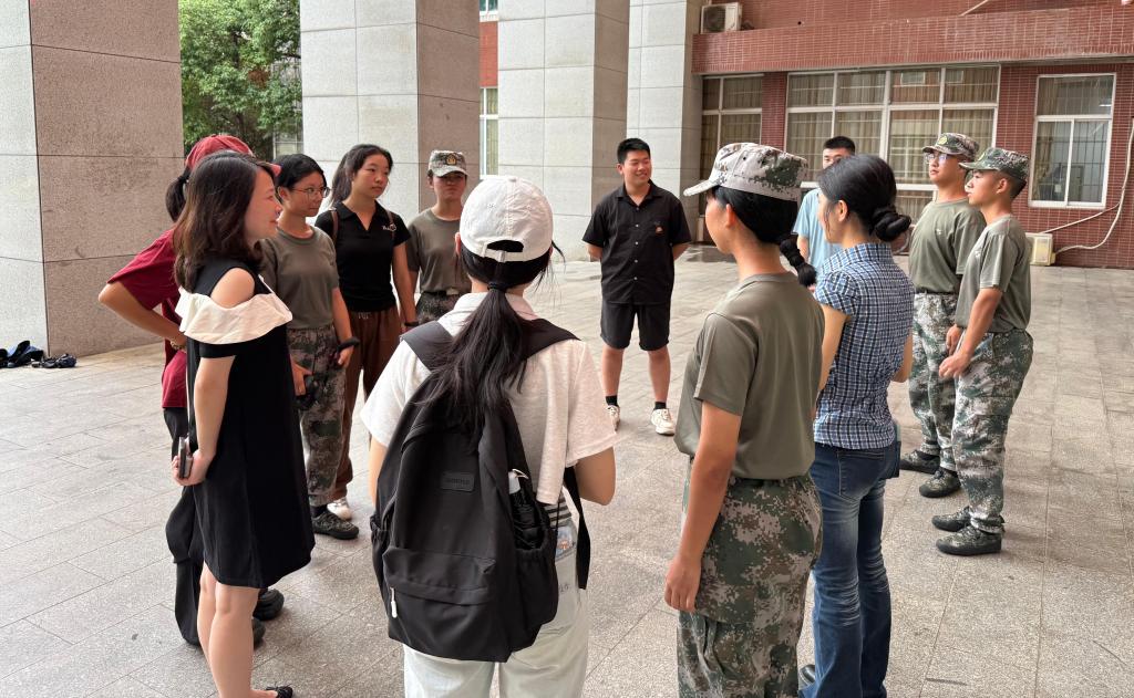 7月12日,文学与新闻传播学院党委副书记刘莎、2024级辅导员项永生及部分民兵连老队员一行前往437必赢会员中心云塘校区工科三号楼,看望并慰问正在参加暑期集训的文新学院民兵连同学。