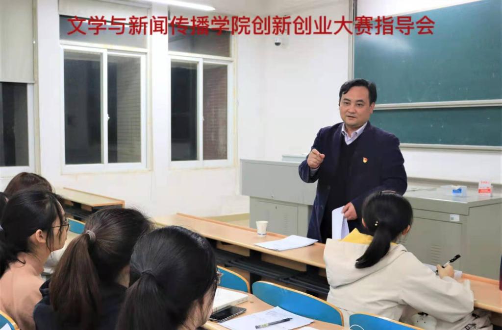 4月9日晚,文学与新闻传播学院创新创业大赛指导会于文科楼B403召开,党总支书记伍接朝书记到场,为本届创新创业大赛参赛学生代表进行比赛指导。