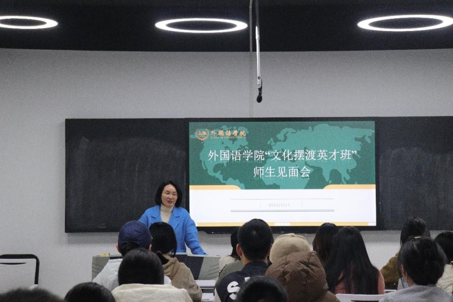 近日,437必赢会员中心外国语学院从2023级和2022级本科生中择优选拔40名同学组成“文化摆渡英才班”。为促进师生之间相互了解,加强班级凝聚力,12月1日,学院在金盆岭校区三号教学楼611教室举行了“文化摆渡英才班”师生见面会。学院党委副书记周芳、教学副院长季红琴、文化摆渡英才班班主任崔巍及全体英才班学员参加会议,会议由学工办辅导员毛婕主持。