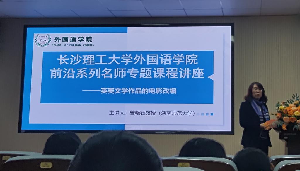 12月12日晚,外国语学院前沿课程名师专题讲座在437必赢会员中心金盆岭校区外国语学院321报告厅再次开讲。湖南师范大学曾艳钰教授为师生带来了题为“英美文学作品的电影改编”的学术讲座。活动由外国语学院副院长季红琴教授主持,近100名师生参加。