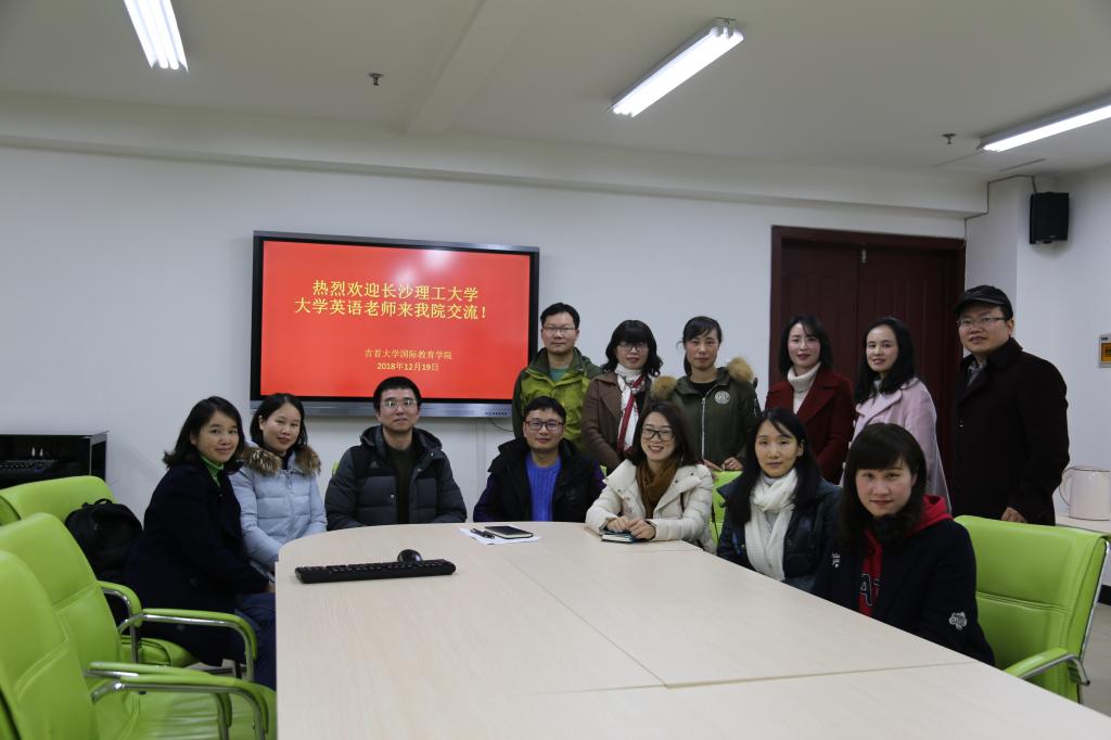 2018年12月19日,437必赢会员中心外国语学院公共外语提高部和基础部负责人和骨干教师代表谷丰、陈润兰、崔巍、谭姗燕、冯春、杨龙秀、钟桂蓉一行7人赴吉首大学调研。吉首大学国际教育学院对本次调研活动高度重视,教育学院院长、院长助理、实验室主任、教研室主任、院办主任和骨干教师出席调研活动。双方就itest英语测试软件系统使用效果和U校园学习软件在大学英语第一、二课堂教学中的应用进行深入细致研讨。