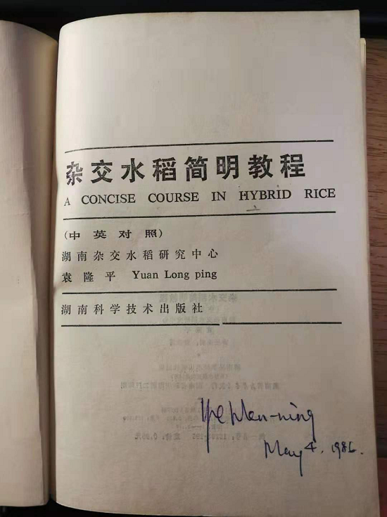 那一年,我刚研究生毕业,回到邵阳一所大专院校教英语。因友人推荐,我临时借调到袁隆平先生的湖南杂交水稻研究中心参与大会的筹备并全程担任大会英文翻译。来中心后,我的主要工作是与国际水稻研究所秘书处和国外代表沟通。当务之急是必须尽快学习并掌握杂交水稻基本知识,了解杂交水稻育种、栽培等英文专业术语及表述方式。时常我还会与杂交中心的科技人员一起去田里看稻子,品味杂交水稻沁人心脾的稻香,感受杂交水稻根粗苗壮的长势。期间,我有机会与袁老频繁接触并认真研读了袁先生独著的《杂交水稻简明教程》(中英文对照版)。记得有一次我把“杂交第一代”翻译的过于复杂,不符合水稻育种的专业表达。袁老笑盈盈地指导我说:“就叫F One。”。顷刻间,我对袁老人品和学识的崇拜油然而生。