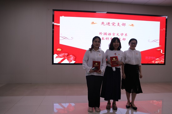 院长段胜峰宣读表彰决定,冯春等20名教职工党员和夏容容等15名学生党员获评学院“优秀共产党员”称号、柳晓辉等6人获评学院“优秀党务工作者”、外国语言文学系等2个党支部获评学院“先进党支部”、陈润兰等11人获评学院“防疫工作优秀先锋队员”。